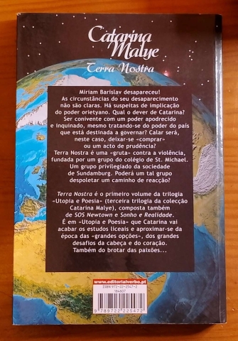 Terra Nostra é o primeiro volume da trilogia «Utopia e Poesia» (terceira trilogia da colecção Catarina Malye), composta também de S.O.S. Newtown e Sonho e Realidade. É em «Utopia e Poesia» que Catarina vai acabar os estudos liceais e aproximar-se da época das «grandes opções», dos grandes desafios da cabeça e do coração. Também do brotar das paixões...