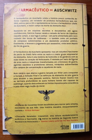 O Farmacêutico de Auschwitz relata a história pouco conhecida de Victor Capesius, um vendedor de produtos farmacêuticos que, em 1943, entrou para a SS e rapidamente se tornou o farmacêutico-chefe de Auschwitz, o maior campo da morte da Alemanha nazi. Baseando-se em arquivos secretos e documentos até agora confidenciais, Patricia Posner revela o reinado de terror de Capesius naquele campo, a sua fuga à justiça - em parte alimentada pelo ouro que ele tinha roubado das bocas de cadáveres - e também como um punhado de corajosos sobreviventes e um destemido promotor público, finalmente, o levaram a julgamento por assassínio vinte anos depois do fim da guerra.