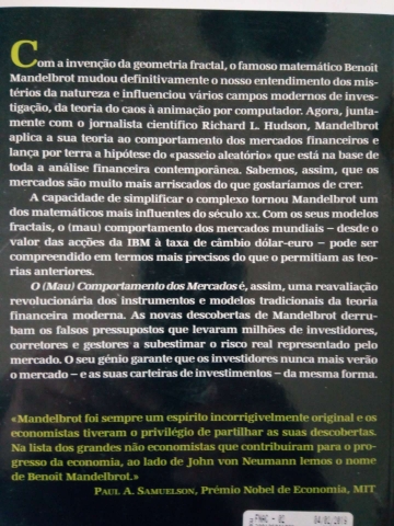 Com a invenção da geometria fractal, o famoso matemático Benoît Mandelbrot mudou definitivamente o nosso entendimento dos mistérios da natureza e influenciou vários campos modernos de investigação, da teoria do caos à animação por computador. Agora, juntamente com o jornalista científico Richard L. Hudson, Mandelbrot aplica a sua teoria ao comportamento dos mercados financeiros e lança por terra a hipótese do "passeio aleatório" que está na base de toda a análise financeira contemporânea. Sabemos, assim, que os mercados são muito mais arriscados do que gostaríamos de crer.