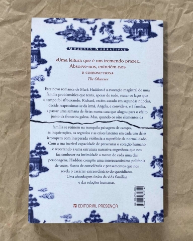 Este novo romance de Mark Haddon é a evocação magistral de uma família problemática que tenta reatar os laços que o tempo foi afrouxando. Richard, recém-casado em segundas núpcias, decide reaproximar-se da irmã, Angela, e convida-a, e à família, a passar uma semana de férias numa casa que alugou junto da fronteira galesa. Mas, quando os oito elementos da família se reúnem na tranquila paisagem de campo, as inquietações, os segredos e as crises latentes em cada um deles irrompem com inesperada violência a superfície da normalidade. Uma abordagem única da vida familiar e das relações humanas.