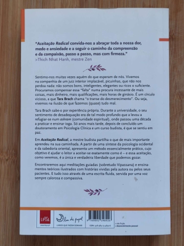 Em Aceitação Radical, a mestre budista partilha o que de mais importante aprendeu na sua caminhada. A partir de uma síntese de psicologia ocidental e sabedoria oriental, apresenta um método essencialmente prático, cujo objetivo é ajudar o leitor a aceitar-se exatamente como é – e essa aceitação, como veremos, é a única e verdadeira liberdade de que podemos gozar.
