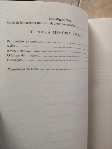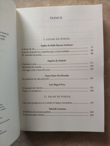 «No Caminho da Poesia — Entre Sophia e Nava apresenta três secções: Lugar da Poesia; Falar de Poesia; Poesia, Memória, Retrato. Se a primeira parte constitui uma aproximação ao poema — um ver por dentro —, e a segunda revela um notório pendor metapoético, a terceira retoma o olhar sobre os cinco nomes analisados, sob o ângulo do testemunho. As memórias reunidas na configuração dos retratos resgatam a instância jubilosa do primeiro olhar que anima estas páginas.