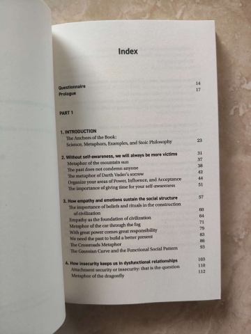 Este livro tem dois objetivos principais: aumentar o sentido de responsabilidade individual e reduzir a perspetiva de vitimização, com leitura e exercícios práticos, para refletir e adaptar à sua própria história de vida. A escrita deste livro é ancorada em ciência, metáforas e exemplos, emoldurada com a filosofia milenar do estoicismo (que influenciou os modelos científicos mais eficazes de psicoterapia), com uma linguagem acessível a todos, mas lógica e articulada.