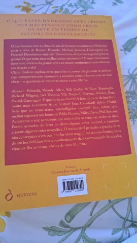 O que fazemos com as obras de arte de homens monstruosos? Podemos amar a obra de Roman Polanski, Michael Jackson, Hemingway ou Picasso? Deveríamos amá-la? Haverá uma «dispensa» especial para os génios? O que torna uma mulher artista um monstro? E o que deveríamos fazer com a beleza e os nossos sentimentos contraditórios em relação a ela?