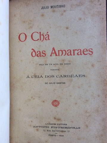 0 Chá das Amaraes ( Teatro ) ) 1.ª EDIÇÃO. Peça em um acto, em verso. Parodia á ceia dos Cardeaes de Julio Dantas, 1903. Raro
