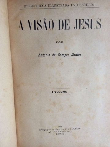 CAMPOS JÚNIOR (António Maria de).— A VISÃO DE JESUS. 1902. Typographia da Empreza d'«O Seculo». Lisboa. 2 vols. 17x24 cm. 389-III e 388-IV págs. Encadernações em pele.