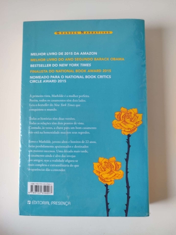 dos os casamentos têm dois lados. Leia o bestseller do New York Times que conquistou o mundo. Todas as histórias têm duas versões. Todas as relações têm dois pontos de vista. Contudo, às vezes, a chave para um bom casamento não está na honestidade mas nos seus segredos. Lotto e Mathilde, jovens altos e bonitos de 22 anos, estão perdidamente apaixonados e destinados aos maiores sucessos. Uma década mais tarde, o casamento ainda é alvo das invejas dos amigos, mas a realidade afigura-se mais complexa e extraordinária do que as aparências dão a entender.