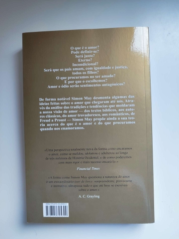 O que é o amor? Pode definir-se? Será justo? Eterno? Incondicional? Será que os pais amam, com igualdade e justiça, todos os filhos? O que procuramos no ser amado? E por que o escolhemos? Amor e ódio serão sentimentos antagónicos? De forma notável Simon May desmonta algumas das ideias feitas sobre o amor que chegaram até nós. Através da análise das tradições e tendências que moldaram a nossa visão de amor — dos textos bíblicos, aos autores clássicos, do amor trovadoresco, aos românticos, de Freud a Proust — Simon May propõe ainda a sua teoria acerca do que é o amor e do que procuramos quando nos enamoramos.