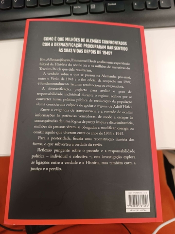Em A Desnazificação, Emmanuel Droit analisa uma experiência fulcral da história do século XX e os milhões de narrativas do Terceiro Reich que dela resultaram. A verdade sobre o que se passou na Alemanha pós-nazi, entre o Verão de 1945 e o fim oficial da ocupação em 1949, é fundamentalmente lacunar, tendenciosa ou enganadora.