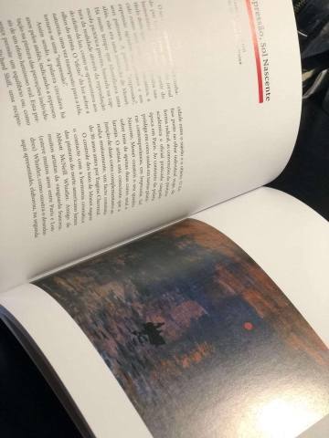 Livro sobre as obras de Monet com a sua devida descrição e explicação.