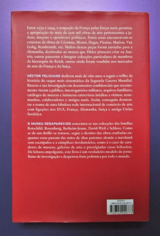 Héctor Feliciano dedicou mais de oito anos a seguir o trilho da história do saque mais sistemático da Segunda Guerra Mundial. Baseou a sua investigação em documentos confidenciais que recentemente vieram a público, interrogatórios militares, arquivos familiares, catálogos de museus e inúmeras entrevistas inéditas a vítimas, testemunhas, colaboradores e antigos nazis. Assim, conseguiu desmontar a trama de uma fabulosa rede internacional de comércio de arte com ligações nos EUA, França, Alemanha, Suíça e antiga União Soviética.