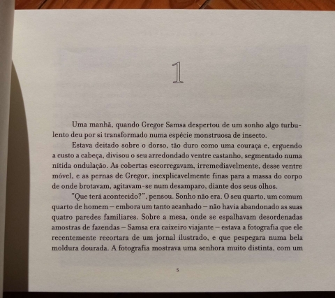 "Uma manhã, quando Gregor Samsa despertou de um sonho algo turbulento deu por si transformado numa espécie monstruosa de insecto."