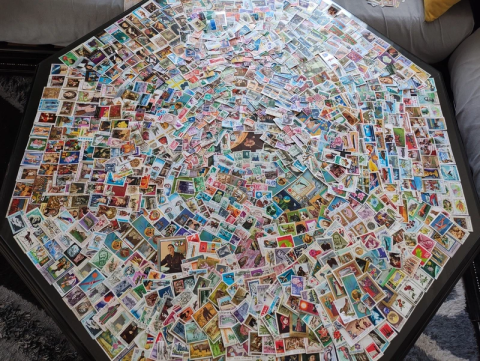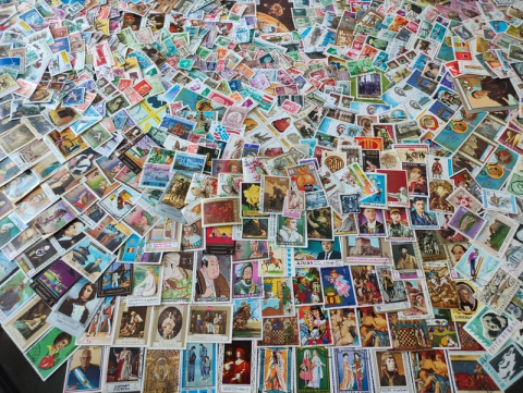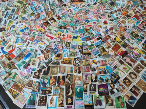 Um conjunto de selos usados e alguns novos, duplicados só ocasionais -