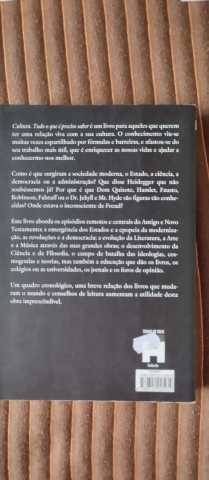 Este livro aborda os episódios remotos e centrais do Antigo e Novo Testamento; a emergência dos Estados e a epopeia da modernização, as revoluções e a democracia; a evolução da Literatura, a Arte e a Música através das suas grandes obras; o desenvolvimento da Ciência e da Filosofia, o campo de batalha das ideologias, cosmogonias e teorias, mas também a educação que dão os livros, os colégios ou as universidades, os jornais e os foros de opinião. Um quadro cronológico, uma breve relação dos livros que mudaram o mundo e conselhos de leitura aumentam a utilidade desta obra imprescindível.