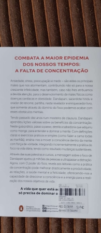 Através das suas palestras e cursos, a mensagem sobre o foco de Dandapani ajudou já milhões de pessoas a ultrapassar a distração. Agora, com O Poder do Foco, revela aos leitores como a prática da concentração pode melhorar drasticamente a produtividade, as relações, a saúde mental e a felicidade, oferecendo-nos a capacidade de direcionar a consciência e a energia para a realização dos nossos objetivos de vida.