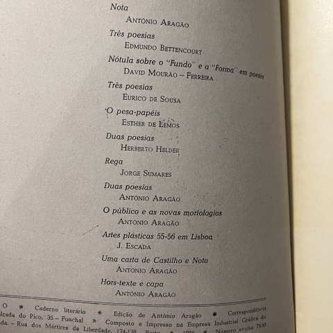 António Aragão, Edmundo Bettencourt, David Mourão-Ferreira, Eurico de Sousa, Esther de Lemos, Herberto Helder, Jorge Sumares e José Escada