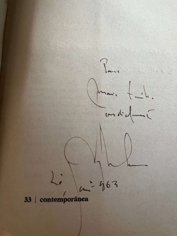Bom exemplar, com breves sinais de manuseamento nas capas de brochura, assinatura de posse na folha de guarda e com os cadernos por abrir da página 185 em diante. VALORIZADO POR DEDICATÓRIA AUTÓGRAFA DO AUTOR.