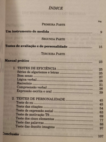Este livro apresenta os princípios de elaboração dos testes que avaliam as aptidões profissionais, a inteligência, a personalidade, o carácter ou o temperamento, em analogia com os princípios usados pelos gabinetes de recrutamento. A apresentação de vários exercícios e questionários permite que o leitor fique a conhecer a mecânica das provas de selecção e, ao executá-los, faça uma auto-avaliação que lhe poderá ser útil em situações futuras."