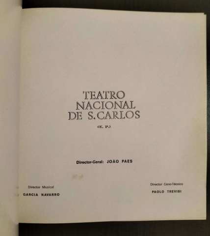 Director Geral: João Paes ; Director Musical: Garcia Navarro ; Director Ceno-Técnico: Paolo Trevisi