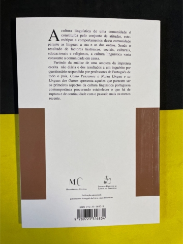 A cultura linguística de uma comunidade é constituída pelo conjunto de atitudes, estereótipos e comportamentos dessa comunidade perante as línguas: a sua e as dos outros. Sendo o resultado de factores históricos, sociais, culturais, educacionais e religiosos, a cultura linguística varia consoante a comunidade em causa. Partindo da analise de uma amostra da imprensa escrita não diária e dos resultados a um inquérito por questionário respondido por professores de Português de todo o país, Como Pensamos a Nossa Língua e as Línguas dos Outros apresenta aqueles que parecem ser os primeiros aspectos da cultura linguística portuguesa contemporânea procurando estabelecer o que há de ruptura e de continuidade com o passado mais ou menos recente.