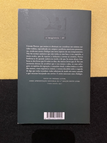 Cesare Pavese, que muitos se obstinam em considerar um teimoso narrador realista, especializado em campos e periferias americanopiemontesas, revela-nos nestes Diálogos um novo aspecto do seu temperamento. Não há escritor autêntico que não tenha as suas luas, o seu capricho, a musa oculta, que de repente o induzem a tornar-se eremita. Pavese lembrou-se de quando andava na escola e do que lia nessa altura: lembrou-se dos livros que lê todos os dias, dos únicos livros que lê. Por um momento deixou de acreditar que o seu totem e tabu, os seus selvagens, os espíritos da vegetação, o assassínio ritual, a esfera mítica e o culto dos mortos, eram esquisitices inúteis, e tentou descobrir neles o segredo de algo que todos recordam, todos admiram de modo um tanto cansado e que encaram bocejando um sorriso. E assim nasceram estes Diálogos.