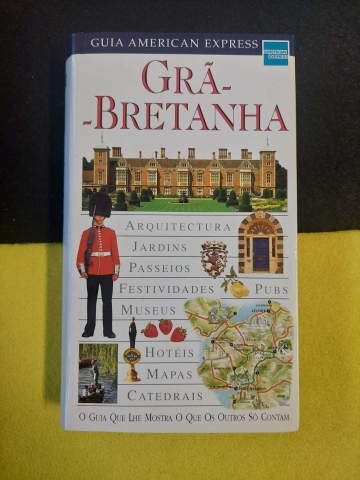 Desde as suas casas de estado até ás suas vilas pacatas, nenhum guia o leva até ao Reino Unido como o Guia American Express: Grã-Bretanha, contendo mais de 1400 fotografias de grande qualidade, mapas das ruas e vistas aéreas elustradas em 3-D pelos principais pontos de atracção. Visite as residências reais do Palácio de Buckingham, o Palácio de Blenheim, o Castelo Warwick, Hampton Court, the Royal Pavilion, e o Castelo de Edinburgo. Sugestões de passeios como: a costa norte de Norfolk, Blakeney Marshes, Hunstanton Cliffs e Caley Mill. Para além da Inglaterra este guia retrata o País de Gales e a Escócia, incluíndo o Museu Nacional do País de Gales Brecon Beacons. Completado com feitos históricos da Inglaterra, Escócia e País de Gales, este também inclui informações sobre a cozinha regional, entretenimento, compras e pubs.