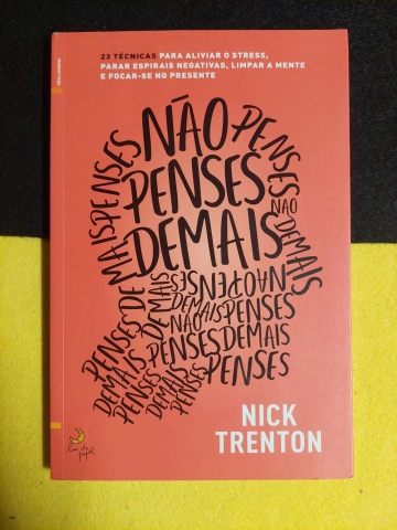 A boa notícia é que a Angie e o James, tal como milhões de pessoas pelo mundo fora, podem libertar-se desta prisão mental autoimposta. Como? Em Não Penses Demais, Nick Trenton ensina-nos 23 técnicas inovadoras e pouco convencionais, mas já testadas e comprovadas pela Psicologia - do Método de Eisenhower ao Treino Autogénico, da Terapia Narrativa à Cognitivo-Comportamental -, para quebrar espirais negativas, limpar a cabeça e focar-se no presente.