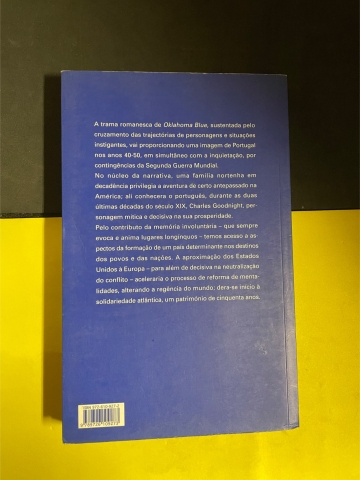 A trama romanesca de Oklahoma Blue, sustentada pelo cruzamento das trajectórias de personagens e situações instigantes, vai proporcionando uma imagem de Portugal nos anos 40-50, em simultâneo com a inquietação, por contingências da Segunda Guerra Mundial. No núcleo da narrativa, uma família nortenha em decadência privilegia a aventura de certo antepassado na América; ali conhecera o português, durante as duas últimas décadas do século XIX, Charles Goodnight, personagem mítica e decisiva na sua prosperidade. Pelo contributo da memória involuntária – que sempre evoca e anima lugares longínquos – temos acesso a aspectos da formação de um país determinante nos destinos dos povos e das nações. A aproximação dos Estados Unidos à Europa – para além de decisiva na neutralização do conflito – aceleraria o processo de reforma de mentalidades, alterando a regência do mundo; dera-se início à solidariedade atlântica, um património de cinquenta anos.