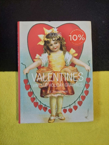 While it may be true that our annual celebration of love began as a pagan feast of the flesh in third century Rome, that shouldnt stop anyone from enjoying this charming collection of Valentines Day ephemera. From cards to candy boxes, party favors to ads and more, these classic graphics celebrate the holiday of love during the period of 1900 to the 1960s. Youll find the pun quotient to be delightfully high, exemplified by such gems as a baker exclaiming, "Youre surely well bread" and a bullfighter vowing "Bullieve meI love you!" To put the imagery in context, Steven Hellers introductory essay traces the history of Valentines Day.