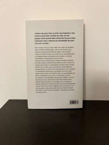 O Erro de Descartes conduz o leitor a uma viagem de descoberta desde a história de Phineas Gage, o famoso caso oitocentista de alteração comportamental após lesão cerebral, até à recriação moderna do cérebro de Gage; e das dúvidas de um neurologista sobre uma hipótese testável relacionada com as emoções e o seu papel fundamental no comportamento racional humano. Com base nas suas experiências em doentes neurológicos afectados por lesões cerebrais, António Damásio demonstra como a ausência de emoções pode prejudicar a racionalidade. Ao explicar como a emoção contribui para a razão e para o comportamento social adaptativo, Damásio oferece-nos também uma nova perspetiva do que as emoções e os sentimentos realmente são: uma perceção direta dos nossos próprios estados físicos, um elo entre o corpo e as suas regulações que visam a sobrevivência, por um lado, e a consciência, por outro. Tão profundo no seu humanismo como no aspeto científico, O Erro de Descartes leva-nos a concluir que os organismos humanos estão dotados, desde que nascem, de uma apaixonada inclinação para fazerem escolhas que a mente social utiliza para criar comportamentos racionais. Escrito com clareza e elegância, este livro provocou animadas discussões e mudou para sempre a visão que temos da relação entre mente e corpo.