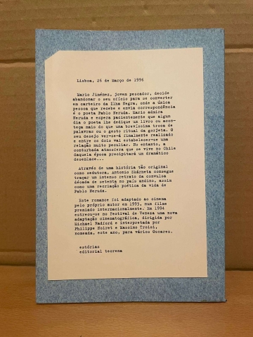 Mario Jiménez, jovem pescador, decide abandonar o seu ofício para se converter em carteiro da Ilha Negra, onde a única pessoa que recebe e envia correspondência é o poeta Pablo Neruda. Mario admira Neruda e espera pacientemente que algum dia o poeta lhe dedique um livro ou aconteça mais do que uma brevíssima troca de palavras ou o gesto ritual da gorjeta. O seu desejo ver-se-á finalmente realizado e entre os dois vai estabelecer-se uma relação muito peculiar. No entanto, a conturbada atmosfera que se vive no Chile daquela época precipitará um dramático desenlace… Através de uma história tão original como sedutora, Antonio Skármeta consegue traçar um intenso retrato da convulsa década de setenta no país andino, assim como uma recriação poética da vida de Pablo Neruda.