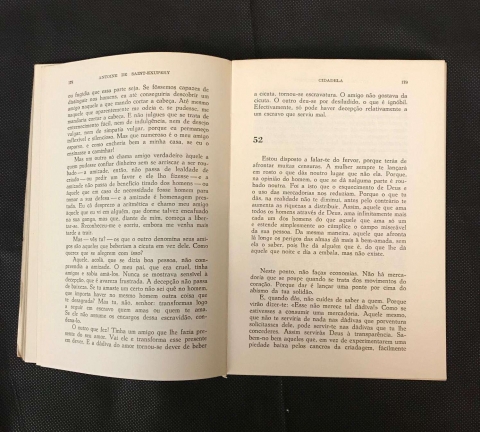 Livro antigo. A capa está deteriorada no canto superior esquerdo mas o interior está em perfeito estado.