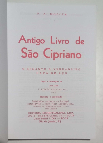 -Antigo Livro de São Cipriano (o gigante e verdadeiro capa de aço) de N. A. Molina.