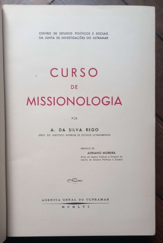 -Curso de Missionologia, por A. da Silva Rego (professor do Instituto Superior de Estudos Ultramarinos).