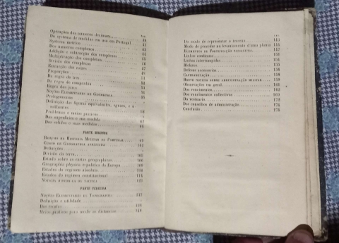 É dividido em 3 partes: Gramática Portuguesa, Resumo da História Militar de Portugal e por último Noções Elementares de Topografia.