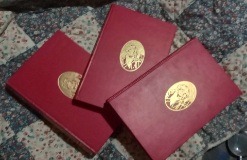 Todos tem capas de origem e encadernação editorial vermelha.