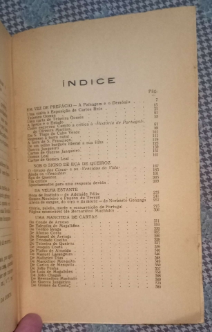 Livro essencialmente de memórias, conta episódios de vultos históricos que ele testemunhou, expõe correspondência remetida por Trindade Coelho, Teixeira Gomes, Bernardino Machado, João Chagas entre muitos outros escritores ou politicos.