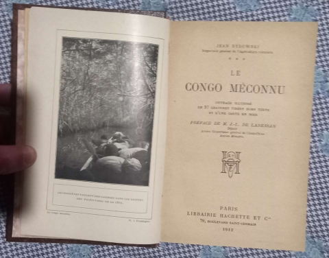 Esta é a primeira e a original edição "Le Congo méconnu" foi publicada em 1912 pela Librairie Hachette et Cie, em Paris, e inclui 57 gravuras fora do texto, além de um mapa desdobrável. O livro oferece uma visão detalhada e etnográfica das populações locais, como os guerreiros Sabangas, e da coleta de marfim, sendo um documento histórico importante sobre a época.