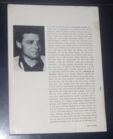 Memória de Elefante, é o primeiro romance de António Lobo Antunes, publicado em 1979. A obra, de cariz autobiográfico, acompanha um dia na vida de um psiquiatra que regressou da guerra colonial em Angola, está separado da mulher e das filhas, e lida com a sua solidão e os traumas da guerra. A narrativa é marcada por um fluxo de consciência, metáforas e uma estrutura fragmentada, refletindo o conflito interior do protagonista.