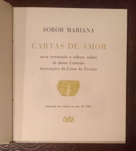 Famosas cartas da freira de Beja, Mariana Alcoforado, cujo o amor não foi correspondido. Aqui com nova restituição e esboço crítico de Jaime Cortesão.