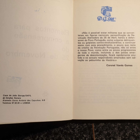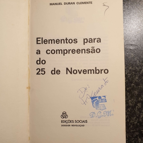 Livro histórico de 1976 sobre o 25 de Novembro, escrito pelo Capitão Duran Clemente. Exemplar com marcas de posse (carimbo e assinatura particular), mas em bom estado geral de conservação. Ideal para colecionadores de história política portuguesa.