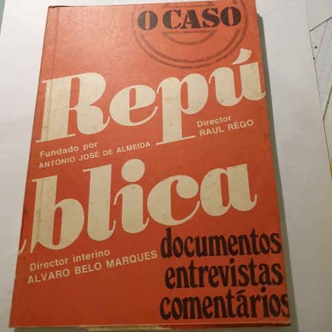• Exterior: A capa apresenta manchas de oxidação (picos de acidez) visíveis nas áreas brancas do título "República".