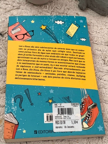 Leo e Rosa são dois adolescentes de catorze anos com algo em comum: para eles, este é o primeiro dia de aulas num colégio novo. Sentindo-se como peixes fora de água num ambiente em que todos os grupinhos já estão formados e eles ainda não sabem onde pertencem, talvez por esse motivo se tenham aproximado um do outro e tornado amigos. Mas será que os dois interpretam da mesma forma os acontecimentos que vivem e os sentimentos que os unem, ou o ano estará recheado de equívocos e mal-entendidos? Narrado alternadamente por Leo e Rosa, Ela Disse, Ele Disse é um livro que aborda inúmeros temas da adolescência - amizades, paixões, ciúmes, bullying, os perigos da Internet - sob dois pontos de vista distintos mas deliciosamente hilariantes.