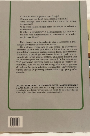 imediata para a vida quotidiana e há muitos exercícios que o leitor e os seus amigos podem fazer, que demons tram como a psicologia do desenvolvimento pode ser es tudada de forma muito prática. Qualquer pessoa que se interesse pelo ser humano gostará de ler esta obra. Terá particular interesse para os cursos do ensino se cundário, para os estudantes integrados em programas de educação para adultos, estudantes universitários, e para cursos de psicologia destinados a grupos profis sionais.