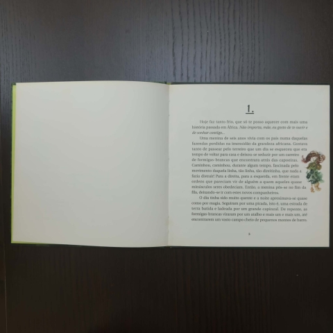 A narradora é uma mãe que descobre a magia encantatória das suas histórias, no dia em que o seu filho se deixa adormecer, ouvindo-a. As múltiplas peripécias vividas pela menina de seis anos, heroína deste conto infanto juvenil, obrigam-na a simular outras personagens, com o fim último de as tornar presentes e vivas. O diálogo gerado envolve mãe e filho numa cumplicidade tal que acabamos por nos deixar cativar, não só por ele, mas também pelos espaços africanos onde tudo se passa.