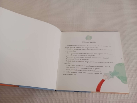 «Era uma vez uma velha tão sovina, tão avarenta, tão unhas-de-fome que nem a roupa lavava em condições para não gastar sabão. Era uma vez um menino que só conseguia desenhar cabras. Era uma vez uma franga pedrês que desapareceu de repente. Era uma vez um presépio que ficou sem o menino Jesus..»