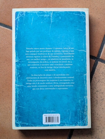 Natasha esteve morta durante 13 minutos. Salva de um lago gelado por um professor de música, regressa a casa sem conseguir lembrar-se do que aconteceu. Intercalando diversos registos (o diário de Natasha, o testemunho da sua <<ex-melhor amiga>>, os relatórios da psiquiatra, as investigações da polícia, as notícias de jornal, etc), que conferem à narrativa uma vivacidade e suspense notáveis, os fios da intriga vão-se entrelaçando com mestria.