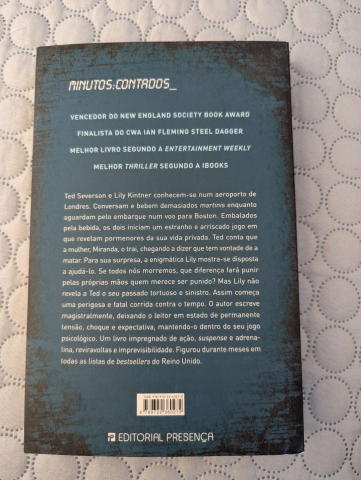 Ted Severson e Lily Kintner conhecem-se num aeroporto de Londres. Conversam e bebm demasiados martinis enquanto aguardam pelo embarque num voo para Boston. Embalados pela bebida, os dois iniciam um estranho e arriscado jogo em que revelam pormenores da sua vida privada. Ted conta que a mulher, Miranda, o trai, chegando a dizer que tem vontade de a matar. Para sua surpresa, a enigmática Lily mostra-se disposta a ajudá-lo. Se todos nós morremos, que diferença fará punir pelas próprias mãos quem merece ser punido? Mas Lily não revela a Ted o seu passado tortuoso e sinistro. Assim começa uma perigosa e fatal corrida contra o tempo. O autor escreve magistralmente, deixando o leitor em estado de permanente tensão, choque e expectativa, mantendo-o dentro do jogo psicológico. Um livro impregnado de ação, suspense e adrenalina, reviravoltas e imprevisibilidade. Figurou durante meses em todas as listas de bestsellers do Reino Unido.