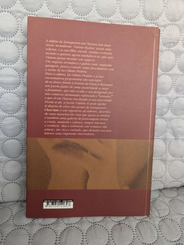 "A aldeia de Lansquenet-sur-Tannes tem duas novas moradores: Vianne Rocher, jovem mãe solteira, e a sua filha Anouk. Ambas correram mundo e querem agora estabelecer-se, pelo que Vianne pensa montar um negócio. Um negócio aromático e guloso mas, naquelas paragens, pouco comum: uma chocolataria com o nome de "La Céleste Praline". Para a aldeia, "La Céleste Praline" e a sua encantadora proprietária são um sopro de ar fresco frente à tirania de Francis Reynaud, um jovem padre de uma austeridade a raiar o fanatismo, que não oculta o seu desagrado por um comércio demasiado sofisticado e "tentador", e que vê em Vianne um desafio à sua autoridade. Frente a ele, a jovem Vianne só pode apelar à alegria de viver das gentes de Lansquenet... Chocolate é um repertório de sabores, descritos de uma maneira tão viva que quase se sentem; é também uma galeria de personagens ternos e cruéis, amáveis e odiosos, sempre intensos e credíveis. Mas é sobretudo um romance tão ameno, tão rico e variado, que deixará nos seus leitores uma impressão imorredoira."