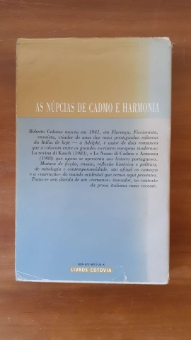 Mistura de ficção, ensaio, reflexão histórica e política, mitologia e contemporaneidade, As Núpcias de Cadmo e Harmonia é um romance inovador. Pelos caminhos da mitologia grega e suas personagens, parte-se das núpcias de Cadmo e Harmonia, a última ocasião em que os deuses do Olimpo se sentaram à mesma mesa com os homens.